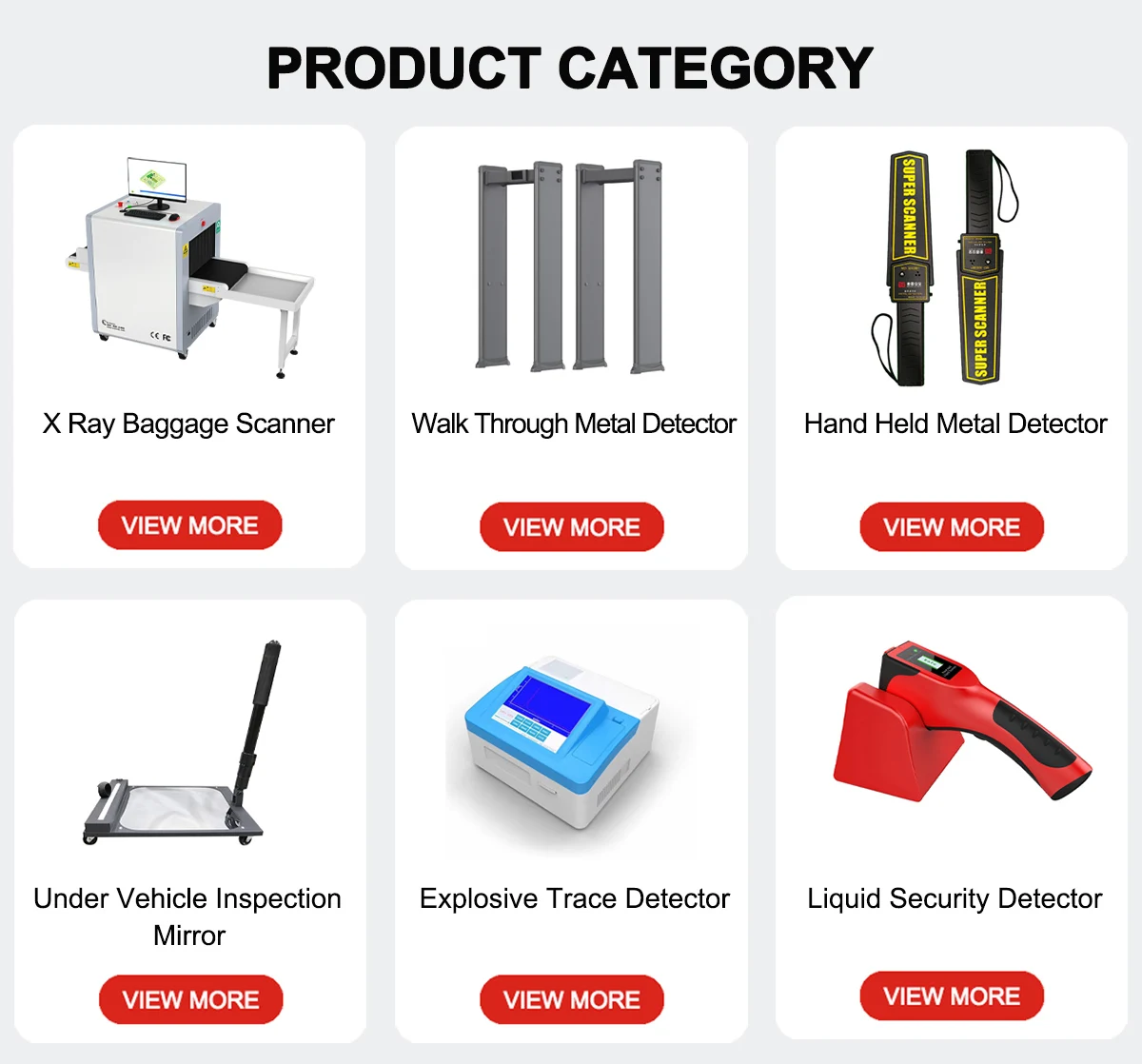 Productos principales:Escáner DE EQUIPAJE DE RAYOS X, detector de metales para caminar a través, detector de metales de mano, detector de explosivos, bajo sistemas de inspección de vehículos